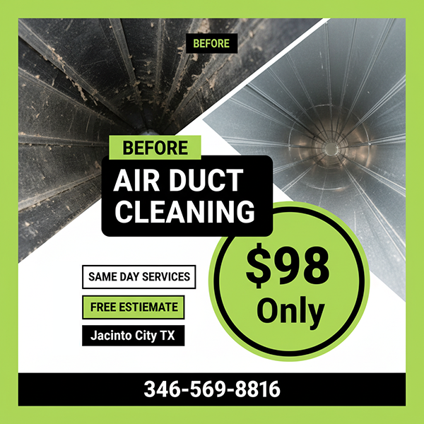 Air Duct Vent Cleaning Jacinto City TX delivers dependable duct care using HEPA vacuums, eco-safe sanitizing, and precise inspections. Our team removes dust, allergens, and buildup to restore smooth airflow, improve HVAC efficiency, and keep indoor environments clean and comfortable.